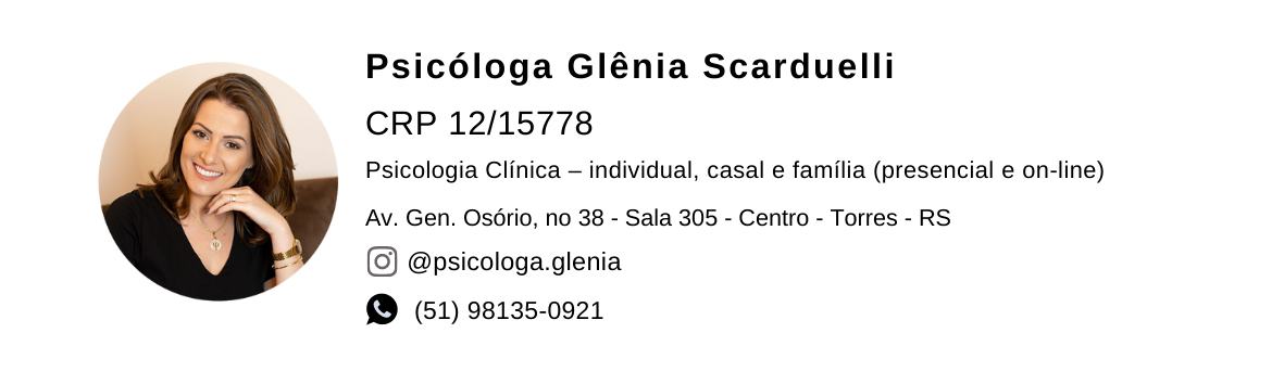 Eu, Psicóloga Glênia Scarduelli (@psicologa.glenia) estou à disposição para auxiliar e esclarecer dúvidas.